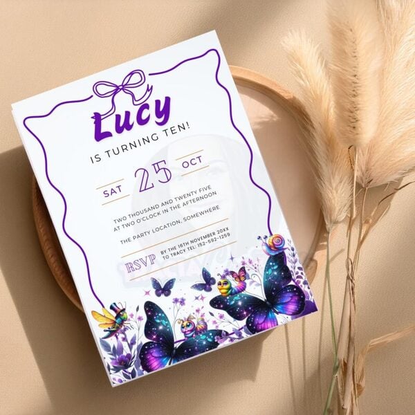 Purple Butterfly 10th Birthday Invite – Editable in Canva