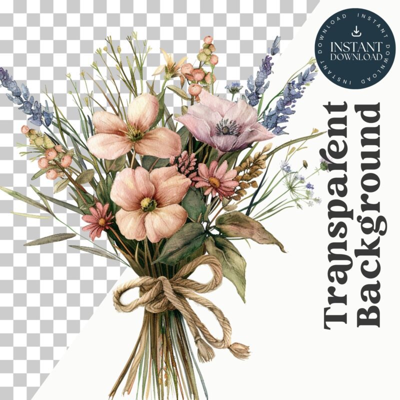 12 Muted Pastel Watercolor Bouquet Clipart – Soft Floral Designs