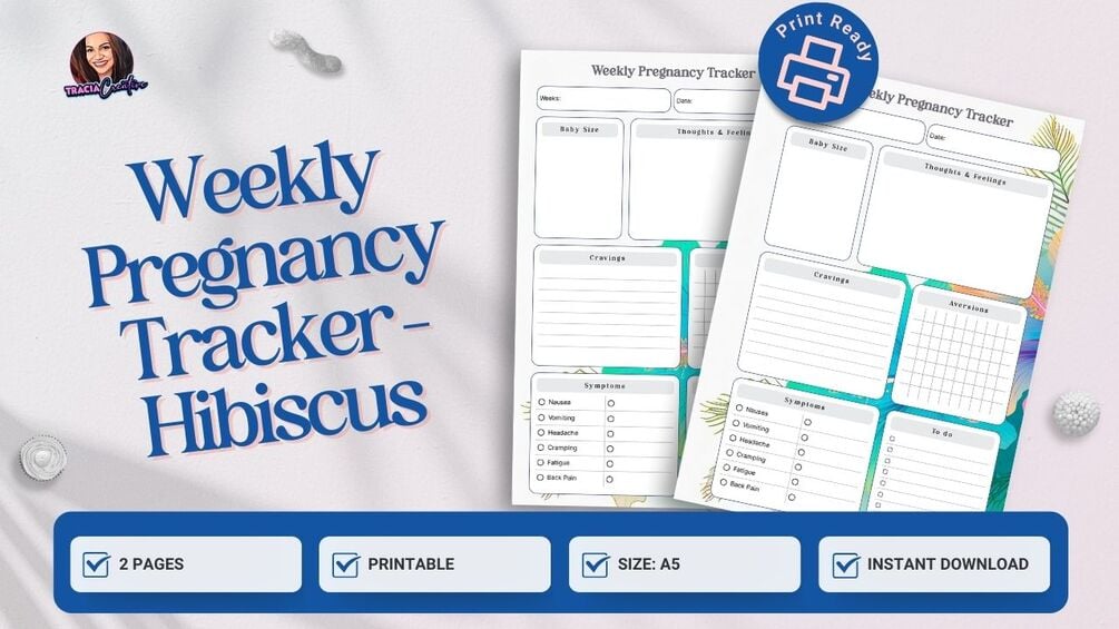 Stay organized during pregnancy with our A5 Weekly Pregnancy Tracker. Capture baby size, symptoms, and more.