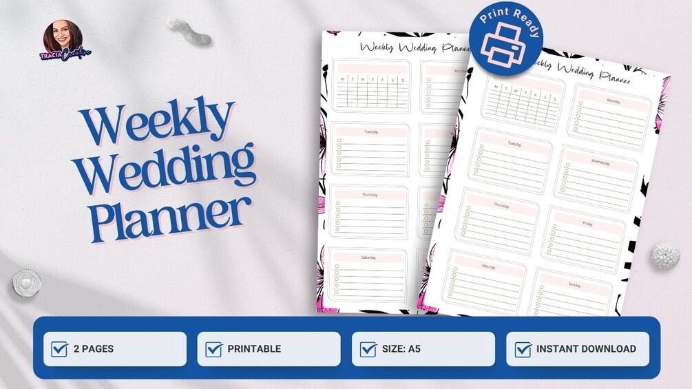 Get ready to tame your wedding planning chaos with our Weekly Wedding Planner! Designed for busy brides-to-be, this charming planner keeps you organized and focused on your special day.