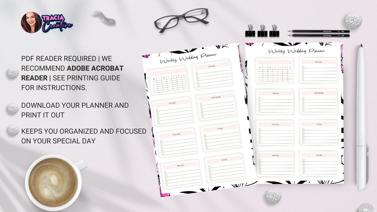 Weekly Wedding Planner - Digital Download, Printable PDF