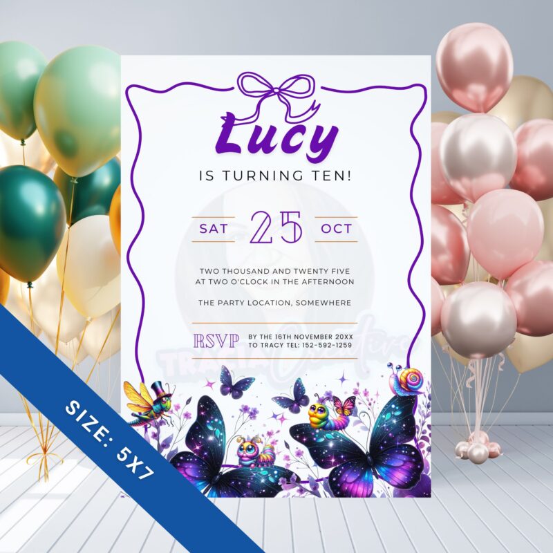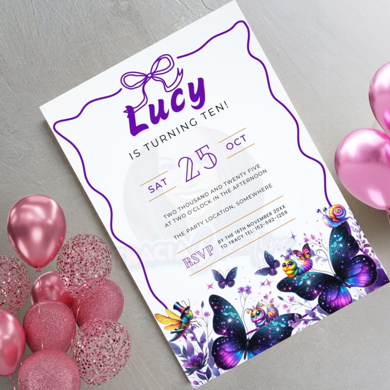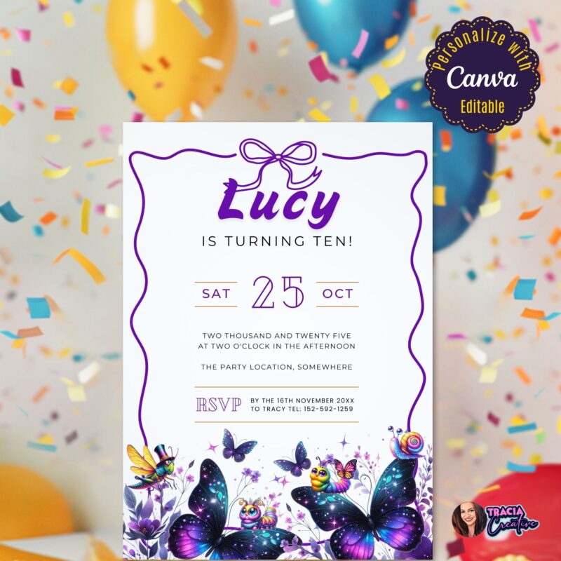 Purple Butterfly 10th Birthday Invite – Editable in Canva